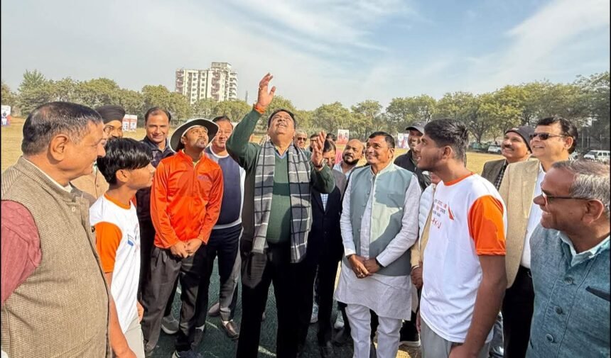 अलवर: राजस्थान के अलवर जिले में खेल प्रतिभाओं को तराशने के लिए आयोजित ‘अलवर सांसद खेल उत्सव’ का उत्साह चरम पर है। शुक्रवार को बाबू शोभाराम राजकीय कला महाविद्यालय के खेल मैदान में एक अलग ही नजारा देखने को मिला, जब वन एवं पर्यावरण राज्यमंत्री (स्वतंत्र प्रभार) संजय शर्मा एक खिलाड़ी के रूप में नजर आए।