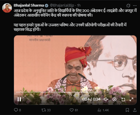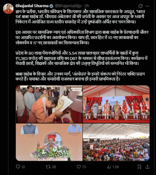 अंबेडकर जयंती पर CM भजनलाल शर्मा का बड़ा एलान: राजस्थान में युवाओं के लिए बनेंगी 200 अंबेडकर ई-लाइब्रेरी