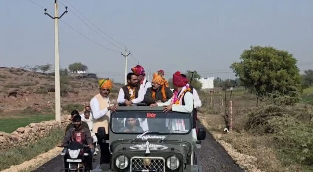 करौली: भाजपा नेता अशोक पाठक का ऐतिहासिक स्वागत; खुली जीप में निकली यात्रा, जेसीबी से हुई पुष्प वर्षा