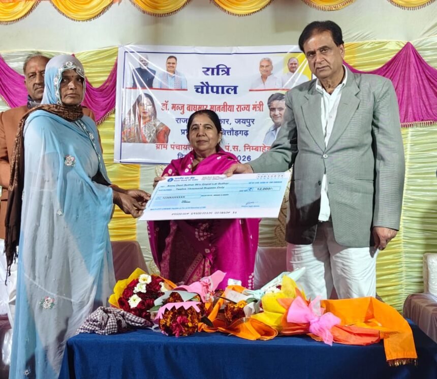 चित्तौड़गढ़, महिला एवं बाल विकास तथा सार्वजनिक निर्माण विभाग राज्य मंत्री और चित्तौड़गढ़ जिला प्रभारी मंत्री डॉ. मंजू बाघमार ने मंगलवार को निंबाहेड़ा उपखंड की ग्राम पंचायत ढोरिया में आयोजित रात्रि चौपाल में ग्रामीणों से सीधा संवाद किया। इस दौरान उन्होंने न केवल जन समस्याओं का समाधान किया, बल्कि केंद्र सरकार के नए ऐतिहासिक कानून वी.बी.-जीरामजी (विकसित भारत-रोज़गार एवं आजीविका गारंटी मिशन अधिनियम 2025) की बारीकियों से भी जनता को अवगत कराया।