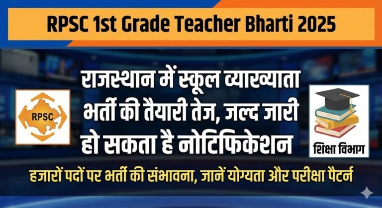 RPSC 1st Grade Teacher Bharti 2025: राजस्थान में स्कूल व्याख्याता भर्ती की तैयारी तेज, जानें योग्यता, सिलेबस और आवेदन प्रक्रिया