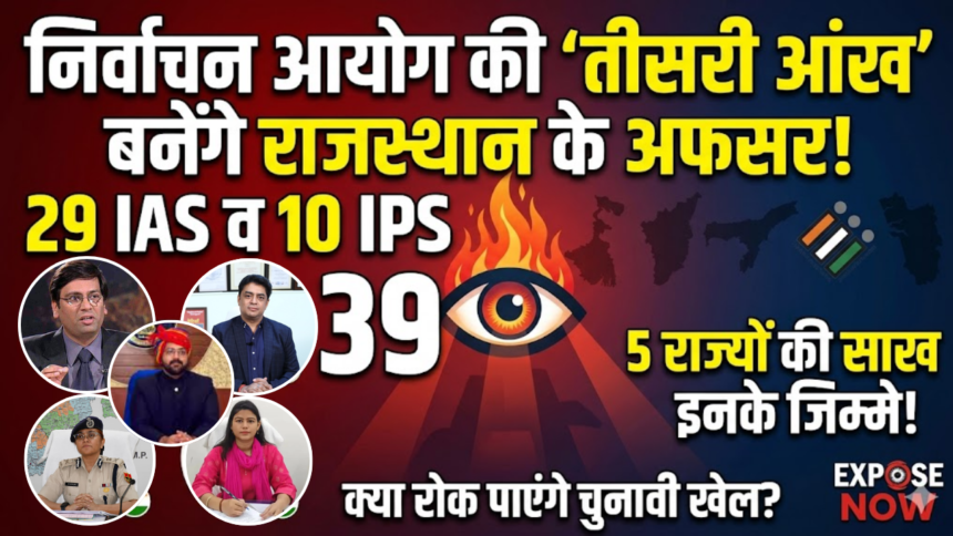 जयपुर: पांच राज्यों के विधानसभा चुनावों का बिगुल बज चुका है, लेकिन इस बार चुनावी बिसात पर असली मोहरे राजस्थान के वो दिग्गज अधिकारी होंगे, जिन्हें निर्वाचन आयोग ने अपनी ‘तीसरी आंख’ बनाकर मैदान में उतारा है। देश के सबसे बड़े लोकतांत्रिक उत्सव को शांतिपूर्ण ढंग से संपन्न कराने की जिम्मेदारी अब इन अधिकारियों के कंधों पर है। EXPOSE NOW की इस विशेष रिपोर्ट में देखिए कैसे राजस्थान कैडर के 39 जांबाज अफसर (29 IAS और 10 IPS) दूसरे राज्यों में लोकतंत्र के पहरेदार बनकर पहुंच रहे हैं।