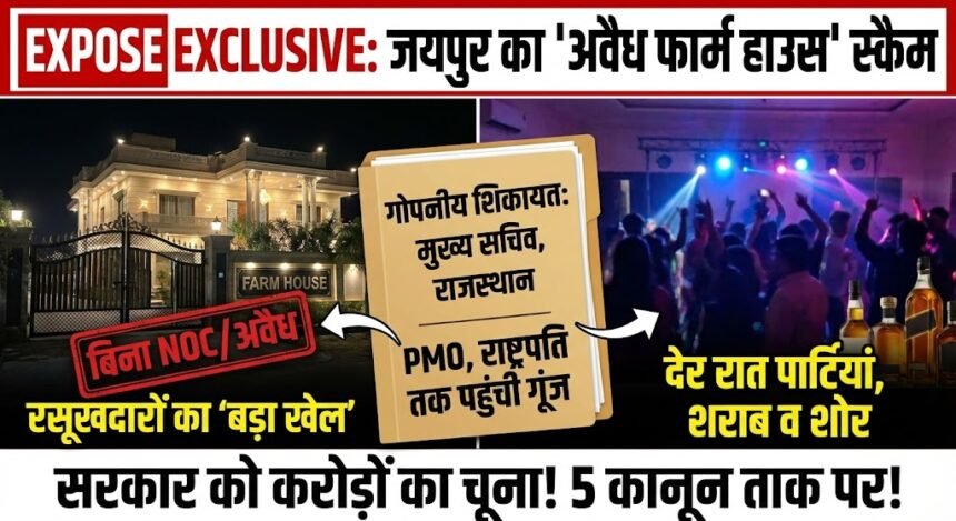 गुलाबी नगरी जयपुर की पॉश कॉलोनियों और बाहरी सीमाओं (Fringe Area) में जब आम शहर सो जाता है, तब कुछ खास जगहों पर एक अलग ही दुनिया आबाद होती है। ऊंची दीवारों के पीछे से आती संगीत की तेज आवाजें और रसूखदारों की चमकती गाड़ियां… बाहर से ‘फार्म हाउस’ का बोर्ड लगाकर सुख-शांति का दिखावा करने वाली इन जगहों के अंदर क्या चल रहा है, यह अब तक एक ‘खुला राज’ था। लेकिन अब इस ग्लैमर की आड़ में चल रहे करोड़ों रुपये के काले कारोबार और सरकारी खजाने को लगाई जा रही चपत का एक ऐसा दस्तावेज सामने आया है, जिसने पूरे प्रशासनिक महकमे को कटघरे में खड़ा कर दिया है। जयपुर के इन ‘सफेदपोश’ ठिकानों का सच इतना गहरा है जिनके तार ब्यूरोक्रेसी से लेकर सत्ता के गलियारों तक फैले हुए हैं।
