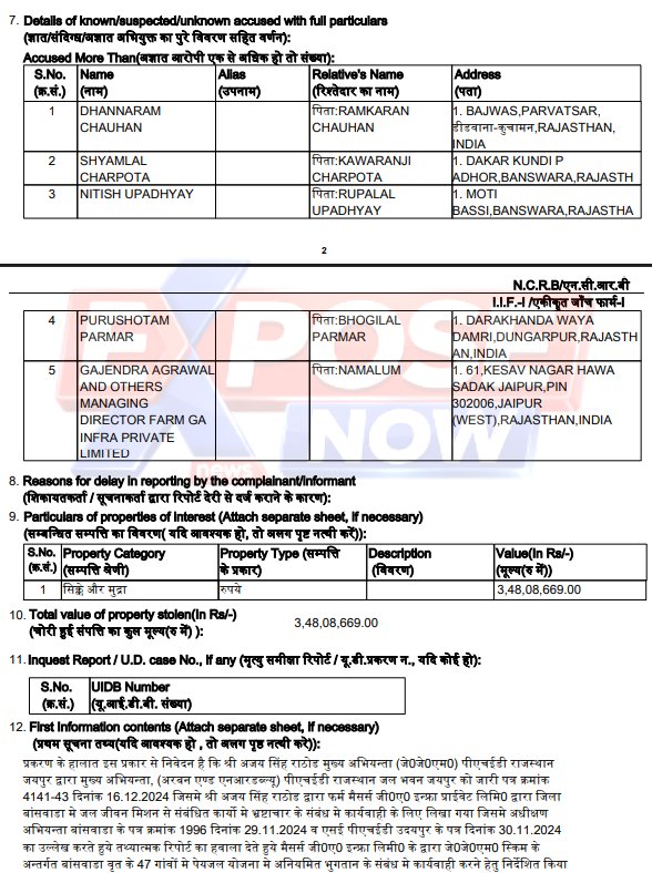 राजस्थान में जल जीवन मिशन (JJM) अब ‘जल’ नहीं, बल्कि ‘भ्रष्टाचार’ का मिशन बन चुका है। ‘एक्सपोज़ नाउ’ के हाथ लगे एक्सक्लूसिव दस्तावेज़ों ने पीएचईडी (PHED) के एक और बड़े कारनामे की पोल खोल दी है। विभाग के अधिकारियों ने एक निजी फर्म के साथ मिलीभगत कर सरकारी खजाने में सेंध लगाई और बिना एक इंच पाइप बिछाए, हवा में ही करोड़ों का भुगतान कर दिया। भ्रष्टाचार निरोधक ब्यूरो (ACB) ने इस मामले में तत्कालीन अधिशाषी अभियंता (EE) सहित 5 लोगों के खिलाफ नामजद एफआईआर (FIR No. 51/2026) दर्ज की है।