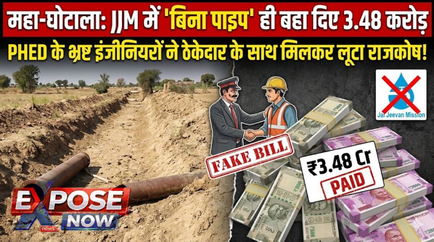 राजस्थान में जल जीवन मिशन (JJM) अब ‘जल’ नहीं, बल्कि ‘भ्रष्टाचार’ का मिशन बन चुका है। ‘एक्सपोज़ नाउ’ के हाथ लगे एक्सक्लूसिव दस्तावेज़ों ने पीएचईडी (PHED) के एक और बड़े कारनामे की पोल खोल दी है। विभाग के अधिकारियों ने एक निजी फर्म के साथ मिलीभगत कर सरकारी खजाने में सेंध लगाई और बिना एक इंच पाइप बिछाए, हवा में ही करोड़ों का भुगतान कर दिया। भ्रष्टाचार निरोधक ब्यूरो (ACB) ने इस मामले में तत्कालीन अधिशाषी अभियंता (EE) सहित 5 लोगों के खिलाफ नामजद एफआईआर (FIR No. 51/2026) दर्ज की है।