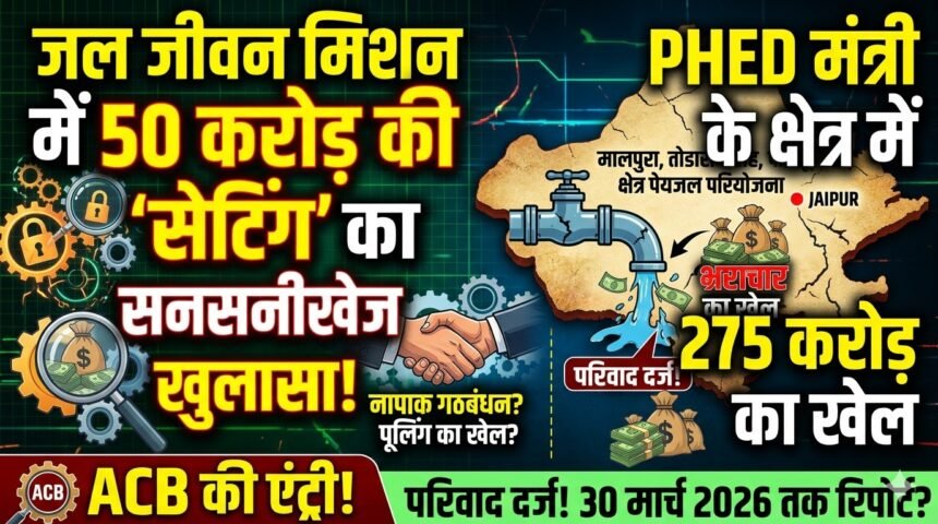 राजस्थान के बहुचर्चित जल जीवन मिशन (JJM) में भ्रष्टाचार की जड़ें कितनी गहरी हैं, इसका एक और काला अध्याय सामने आया है। ‘एक्सपोज़ नाउ’ के पास मौजूद एक्सक्लूसिव दस्तावेज़ों से पता चला है कि मालपुरा, टोडारायसिंह और पीपलू क्षेत्र की 275 करोड़ रुपये की पेयजल परियोजना में 50 करोड़ रुपये से ज्यादा के घोटाले की बिसात बिछाई जा चुकी है। इस पूरे खेल में विभाग के रसूखदार इंजीनियर और हैदराबाद की एक चहेती कंपनी के बीच ‘नापाक गठबंधन’ के गंभीर आरोप लगे हैं।