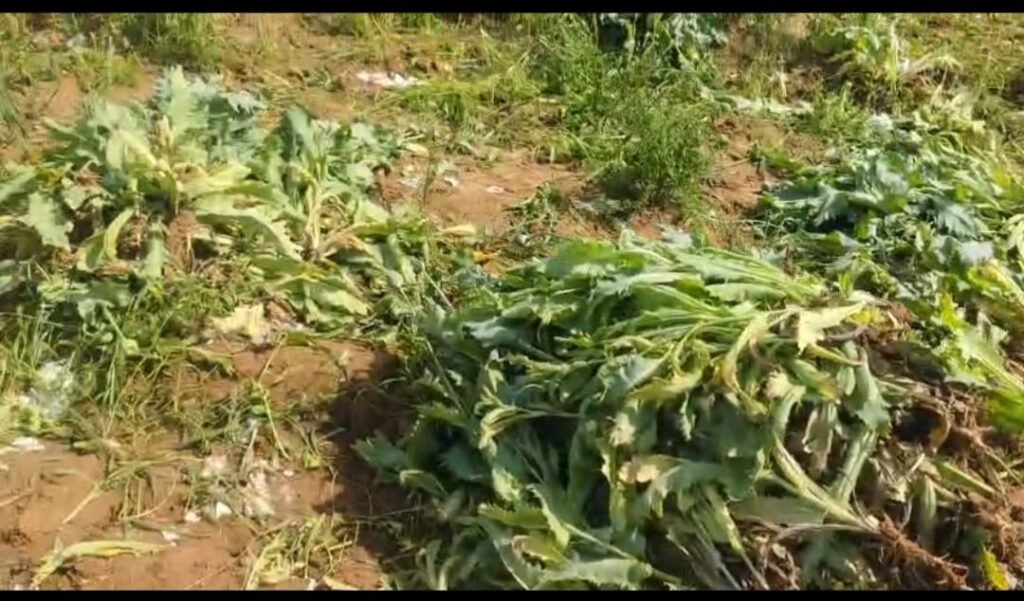 करौली | करौली जिला पुलिस ने नशें के अवैध कारोबार के खिलाफ शनिवार को एक बड़ी कामयाबी हासिल की है। पुलिस ने कैलादेवी थाना इलाके में सरसों की फसल की आड़ में चोरी-छिपे की जा रही अफीम की खेती का भंडाफोड़ किया है। इस कार्रवाई में पुलिस ने दो आरोपियों को गिरफ्तार कर करीब 2 करोड़ रुपये मूल्य की अफीम के हरे पौधे जब्त किए हैं।