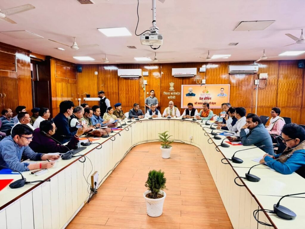 करौली: राजस्थान सरकार के गृह राज्य मंत्री और करौली जिले के प्रभारी मंत्री जवाहर सिंह बेंढम शनिवार को जिला मुख्यालय के दौरे पर रहे। इस दौरान उन्होंने प्रेस वार्ता आयोजित कर वित्त मंत्री दीया कुमारी द्वारा पेश किए गए बजट 2026-27 को ‘विकसित राजस्थान’ का संकल्प बताया। हालांकि, विकास की घोषणाओं के बीच मंत्रीजी पत्रकारों के तीखे सवालों, विशेषकर सीएमएचओ पर लगे भ्रष्टाचार के आरोपों और यूजीसी कानून पर पूरी तरह चुप्पी साध गए।
