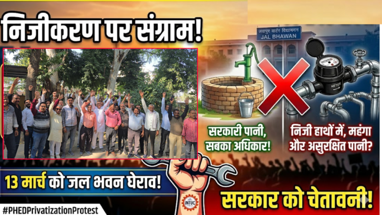 जलदाय विभाग के निजीकरण पर संग्राम: इंटक का निर्णायक ऐलान, 13 मार्च को जयपुर में होगा जल भवन का ऐतिहासिक घेराव
