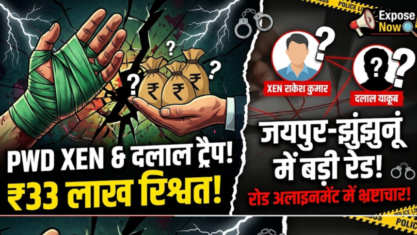 राजस्थान भ्रष्टाचार निरोधक ब्यूरो (ACB) ने शुक्रवार रात एक बड़ी कार्रवाई को अंजाम देते हुए सार्वजनिक निर्माण विभाग (PWD) के एक अधिशाषी अभियंता (XEN) और एक दलाल को 33 लाख रुपए की भारी-भरकम रिश्वत लेते हुए रंगे हाथों ट्रैप किया है। यह कार्रवाई जयपुर और झुंझुनूं में एक साथ संचालित की गई।