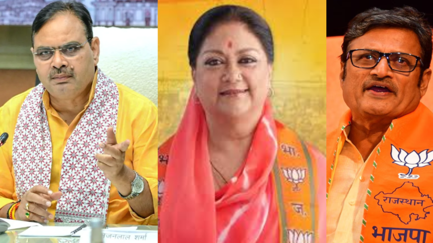 - सत्ता और संगठन: मुख्यमंत्री भजनलाल शर्मा और पूर्व मुख्यमंत्री वसुंधरा राजे।