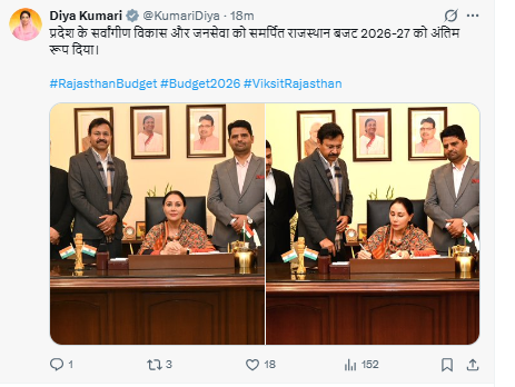 राजस्थान की उपमुख्यमंत्री एवं वित्त मंत्री दिया कुमारी ने वित्त वर्ष 2026-27 के बजट को अंतिम रूप दे दिया है। वह 11 फरवरी, बुधवार सुबह 11 बजे विधानसभा में प्रदेश का बजट पेश करेंगी। यह भजनलाल सरकार का तीसरा बजट होगा, जिससे युवाओं, किसानों और महिलाओं को बड़ी उम्मीदें हैं।