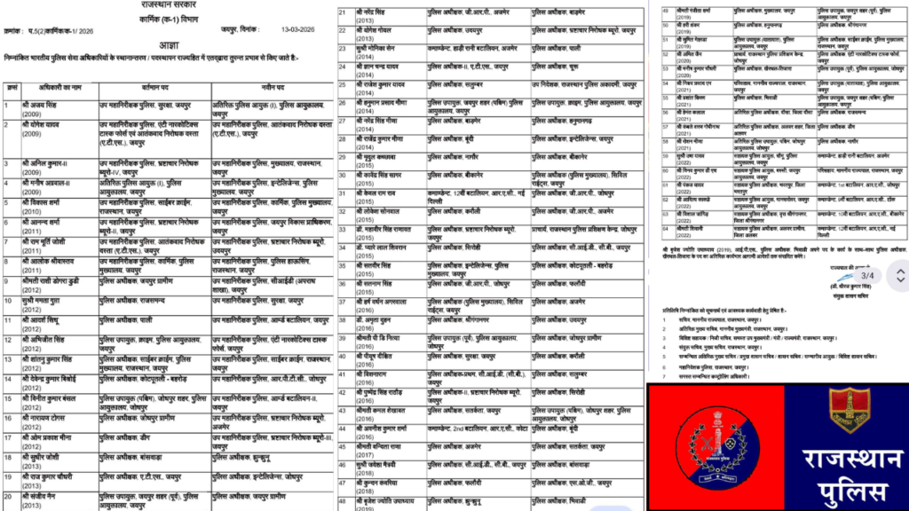 राजस्थान पुलिस में बड़ा फेरबदल: 22 जिलों के एसपी बदले, 64 आईपीएस अधिकारियों के तबादले; देर रात जारी हुई सूची