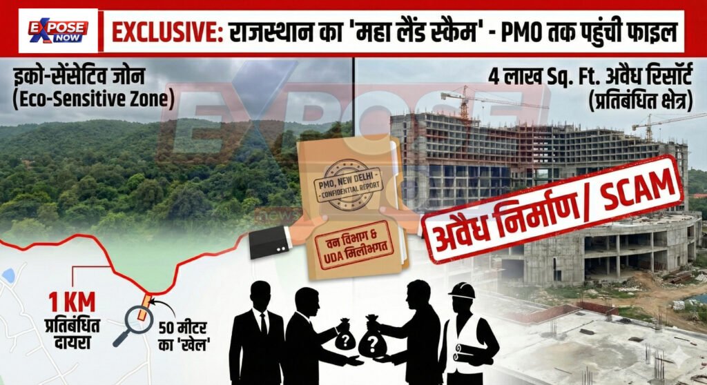 राजस्थान के जंगलों के बीच नियमों को कुचलकर खड़ा किया गया 300 करोड़ का ‘कंक्रीट का जंगल’। एक ऐसा ‘महाघोटाला’ जिसकी गूंज दिल्ली में PMO की टेबल तक जा पहुंची है। आखिर कैसे अफसरों ने नक्शे पर कर दिया ’50 मीटर’ का सबसे बड़ा खेल? पढ़िए इस एक्सक्लूसिव खुलासे में… झीलों की नगरी उदयपुर की … Continue reading Expose Exclusive: राजस्थान में 300 करोड़ का ‘लैंड स्कैम’, वन विभाग और प्राधिकरण की मिलीभगत से बना अवैध रिसॉर्ट, PMO पहुंची फाइल