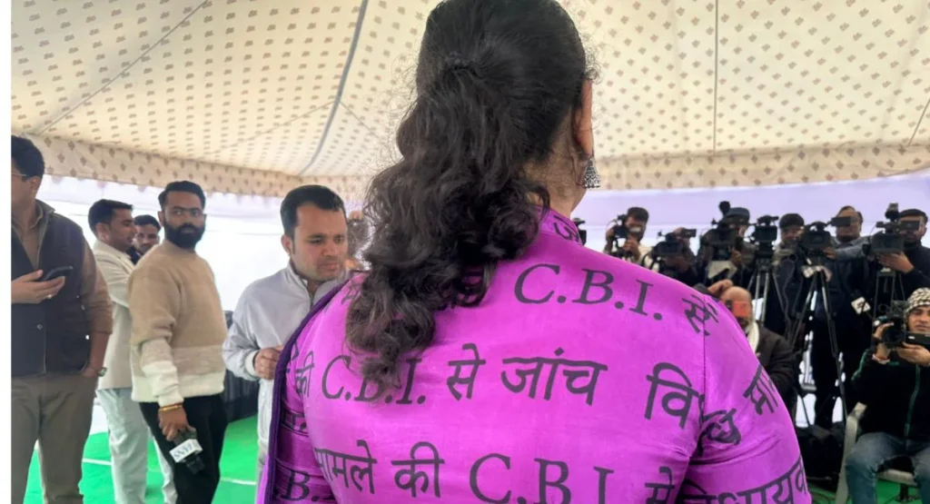 जयपुर, राजस्थान विधानसभा के बजट सत्र के पहले दिन जहाँ सियासी गलियारों में कई बड़े मुद्दों पर चर्चा रही, वहीं बयाना से निर्दलीय विधायक ऋतु बनावत ने अपने पहनावे और विरोध के तरीके से सबका ध्यान अपनी ओर खींच लिया। विधायक बनावत ‘CBI जांच’ के नारे लिखी हुई साड़ी पहनकर विधानसभा पहुंचीं।