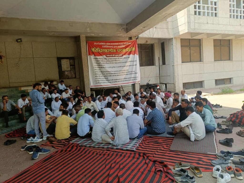 अनिश्चितकालीन धरने के तीसरे दिन आज जयपुर के जल भवन परिसर में एक अजीबोगरीब नज़ारा दिखा। जब मंत्रियों के आश्वासन कोरे कागज़ साबित हुए और अधिकारियों की संवेदनशीलता मर गई, तो हताश ठेकेदारों ने परिसर में स्थित मंदिर में डेरा डाल दिया। ठेकेदारों का कहना है कि सरकार “बजट का टोटा” होने का बहाना बना रही है, जबकि हकीकत में यह प्रशासनिक इच्छाशक्ति की कमी है। संकट इतना गहरा है कि ठेकेदार अब अपनी जेब से जीएसटी भर रहे हैं और बैंकों की किश्तों के बोझ तले दब चुके हैं। ऐसे में अब ठेकेदारों का यह संकट अब संकटमोचन के सहारे है। ठेकेदार अपनी मांगों को लेकर धरने पर बैठकर रोजाना हनुमान चालीसा का पाठ करेंगे। अब संकटमोचन की ठेकेदारों का संकट दूर करवाएगा।