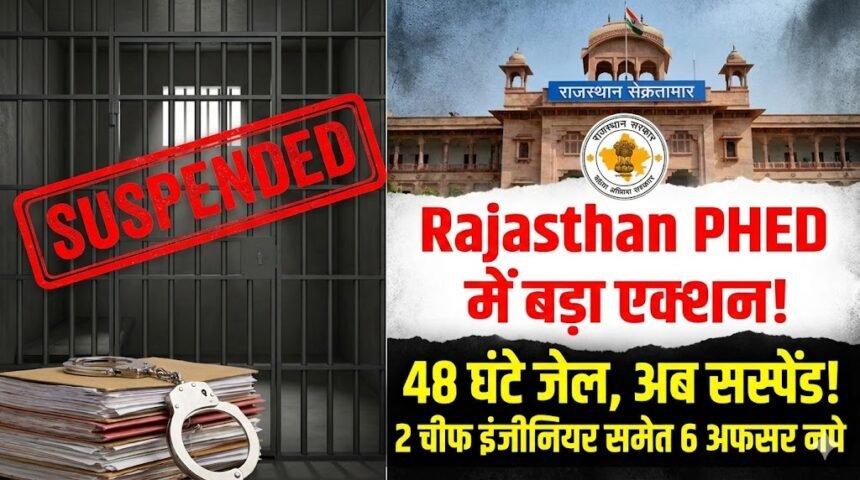 जयपुर: राजस्थान में बहुचर्चित जल जीवन मिशन (JJM) घोटाले में भ्रष्टाचार निरोधक ब्यूरो (ACB) की कार्रवाई के बाद राज्य सरकार ने कड़ा रुख अपनाया है । कार्मिक विभाग ने भ्रष्टाचार के गंभीर आरोपों में गिरफ्तार किए गए जन स्वास्थ्य अभियांत्रिकी विभाग (PHED) के दो मुख्य अभियंता, दो अतिरिक्त मुख्य अभियंता, एक अधिशाषी अभियंता और एक वित्तीय सलाहकार को तत्काल प्रभाव से निलंबित कर दिया है ।