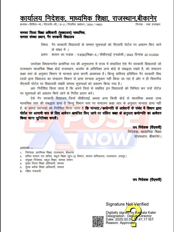 दरअसल प्रदेश में निजी संस्थानों द्वारा स्कूलों के संचालन में नियमों का खुला उल्लंघन किया जा रहा है, जिसको लेकर कार्यालय निदेशक, माध्यमिक शिक्षा राजस्थान, बीकानेर द्वारा कई बार आदेश भी जारी किए गए हैं। इन आदेशों के अनुसार, राज्य में संचालित ऐसे गैर-सरकारी विद्यालय, जो राजस्थान बोर्ड (RBSE) के अलावा अन्य बोर्ड (CBSE) से संबद्धता रखते हैं, उन्हें अपने संचालन कक्षा स्तर के अनुसार राज्य विभाग से मान्यता लेना अनिवार्य है लेकिन हकीकत यह है कि प्रदेश के 25 हजार से ज्यादा स्कूल केवल कक्षा 1 से 8 तक की मान्यता लेकर बैठे हैं। वे कक्षा 9 से 12 तक के संचालन के लिए CBSE या अन्य बोर्ड से एफिलिएशन तो ले लेते हैं, लेकिन राज्य शिक्षा विभाग से एनओसी(NOC) और क्रमोन्नति (Recognition) नहीं लेते है। निजी संस्थानों द्वारा स्कूल CBSE की संबद्धता को ही मान्यता मानकर मनमाने तरीके से शिक्षा का व्यापार कर रहे हैं।
