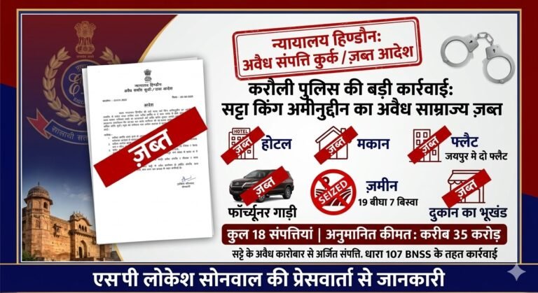 करौली में ‘सट्टा किंग’ अमीनुद्दीन पर पुलिस का सबसे बड़ा प्रहार: 35 करोड़ की 18 संपत्तियां होंगी कुर्क
