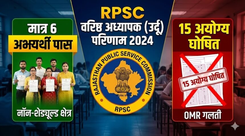 जयपुर – राजस्थान लोक सेवा आयोग (RPSC) ने वरिष्ठ अध्यापक (माध्यमिक शिक्षा विभाग) प्रतियोगी परीक्षा-2024 को लेकर अहम सूचना जारी की है। आयोग ने उर्दू विषय के पदों के लिए पात्रता जांच हेतु ‘विचारित सूची’ (Provisional List) जारी कर दी है। हैरानी की बात यह है कि परीक्षा में शामिल हुए अभ्यर्थियों में से नॉन-शेड्यूल्ड एरिया (Non-Scheduled Area) के लिए मात्र 6 अभ्यर्थियों को ही पात्रता जांच के लिए सफल घोषित किया गया है। वहीं, अनुसूचित क्षेत्र (Scheduled Area) में एक भी अभ्यर्थी न्यूनतम उत्तीर्णांक (Minimum Passing Marks) प्राप्त नहीं कर सका, जिसके चलते वहां कोई सूची जारी नहीं की गई।
