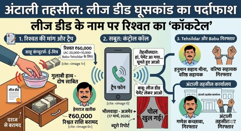 भीलवाड़ा जिले की अंटाली तहसील में भ्रष्टाचार निरोधक ब्यूरो (ACB) ने एक बड़े घूसकांड का पर्दाफाश किया। एक कृषि फर्म…