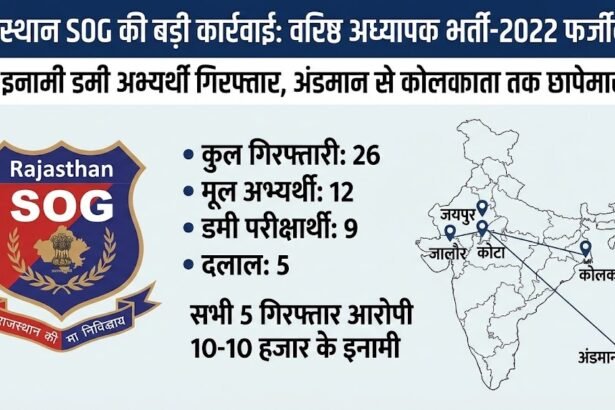 जयपुर (SOG मुख्यालय)। राजस्थान में प्रतियोगी परीक्षाओं में सेंधमारी करने वाले गिरोहों के खिलाफ स्पेशल ऑपरेशंस ग्रुप (SOG) का एक्शन…