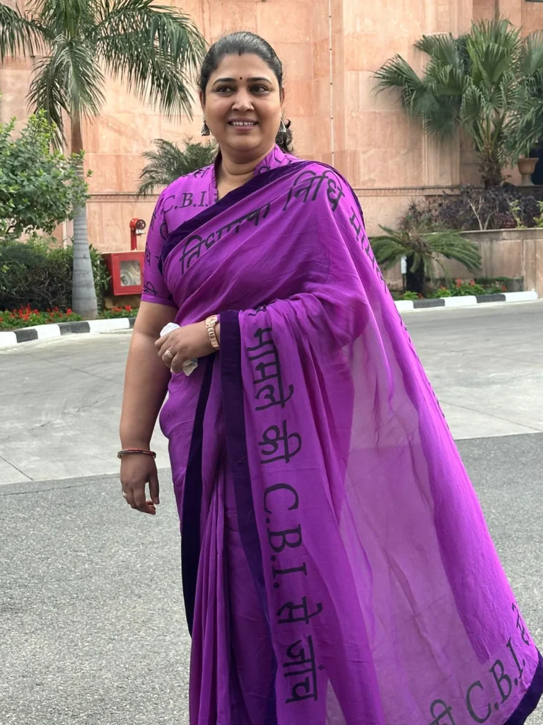 राजस्थान विधानसभा: ‘CBI जांच’ लिखी साड़ी पहनकर पहुंचीं विधायक ऋतु बनावत, भ्रष्टाचार के आरोपों पर सदन के बाहर अनोखा प्रदर्शन